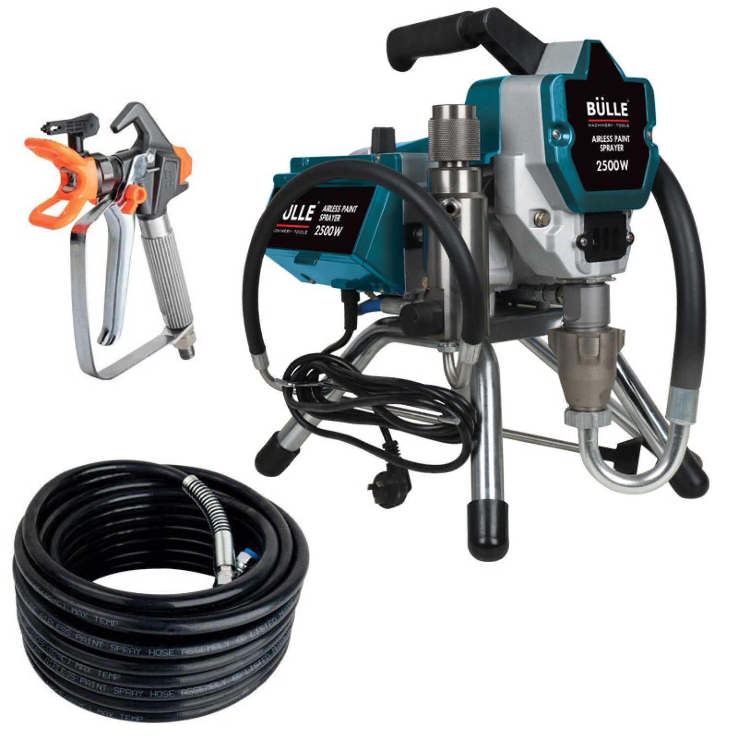 Ηλεκτρικό Σύστημα Βαφής AIRLESS, 2500 Watt μέγιστης πίεσης 207 Bar και παροχής 2600 ml/min με Πιστόλι Βαφής και Εύκαμπτο Σωλήνα 15m, Κατάλληλο για Μεσαίας Έντασης Επαγγελματικές Εφαρμογές με Απόδοση έως 20 τ.μ.το λεπτό