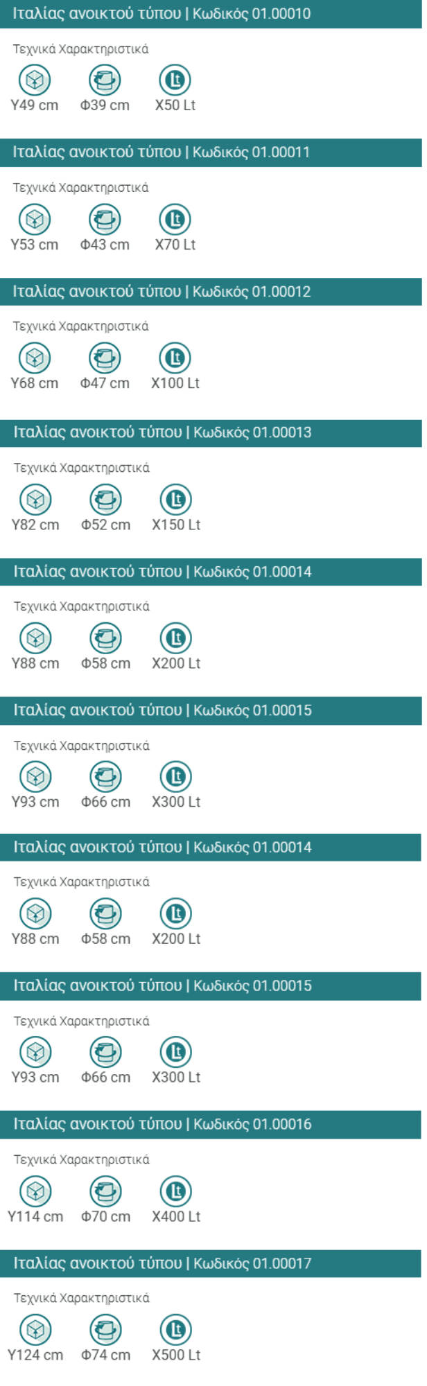 Για παραγγελία δοχείου από 100 L και πάνω, επικοινωνήστε