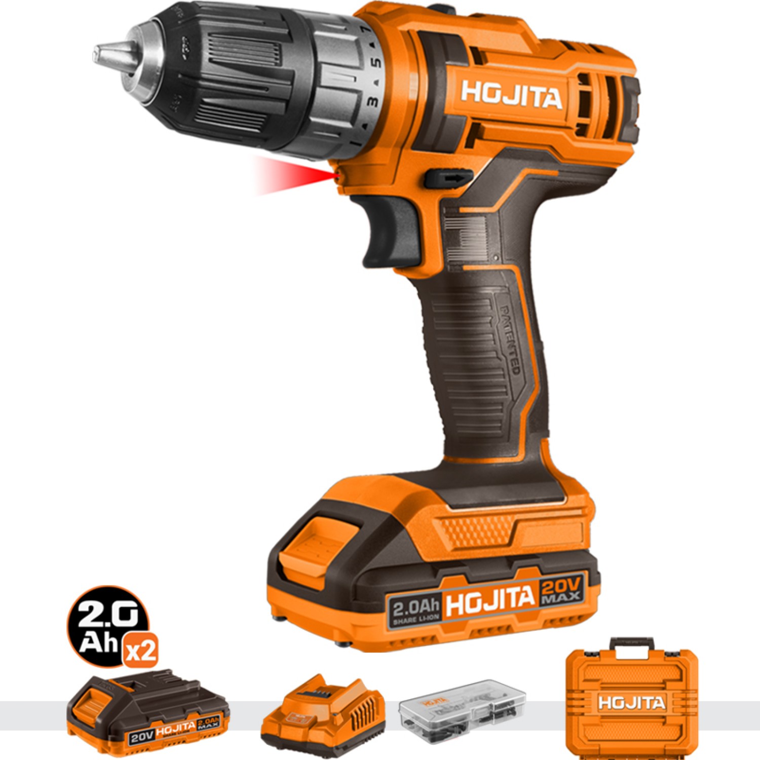 **Δραπανοκατσάβιδο Μπαταρίας Hojita 20V (2x2.0Ah)** Το δραπανοκατσάβιδο μπαταρίας Hojita 20V συνδυάζει ισχύ και ακρίβεια για όλες τις ανάγκες βιδώματος και τρυπήματος.