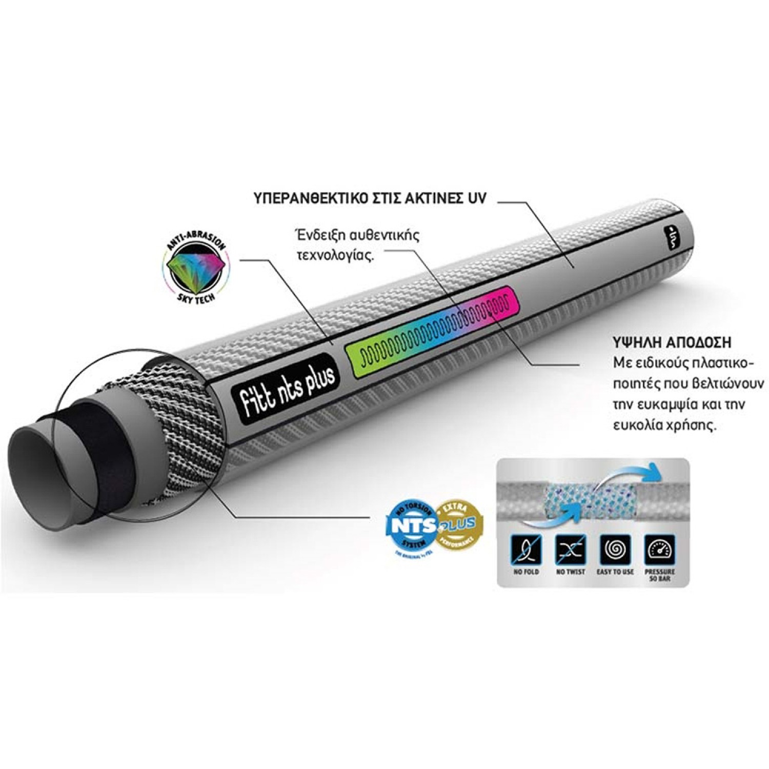 Χάρη στην ειδική πλέξη αποτρέπεται το τσάκισμα και η ροή του νερού παραμένει αδιάλλειπτη.