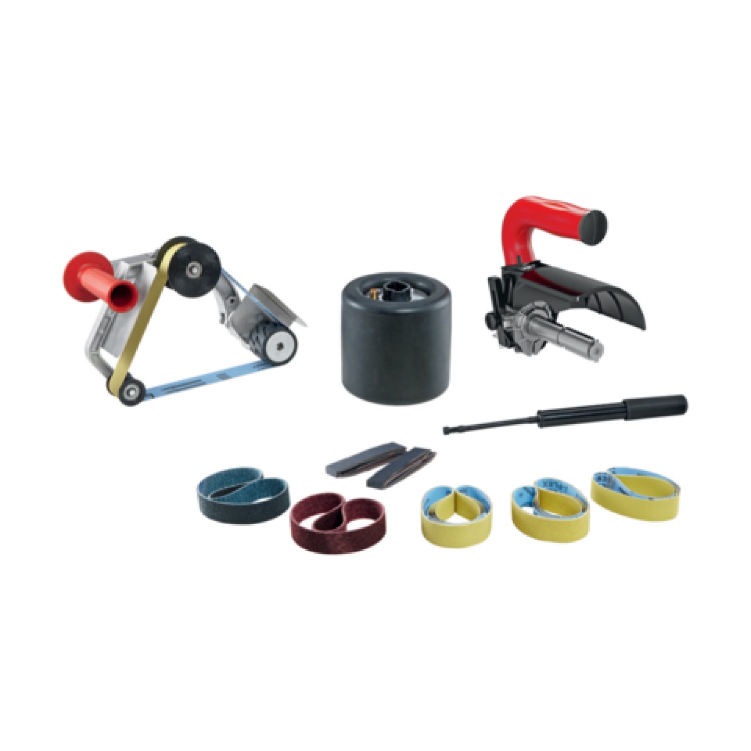 Μοναδικό σύστημα αλλαγής της κεφαλής χωρίς εργαλεία, που μετατρέπει τον λειαντήρα σωλήνων και τη σατινιέρα σε λίμα για λείανση στενών και δυσπρόσιτων σημείων