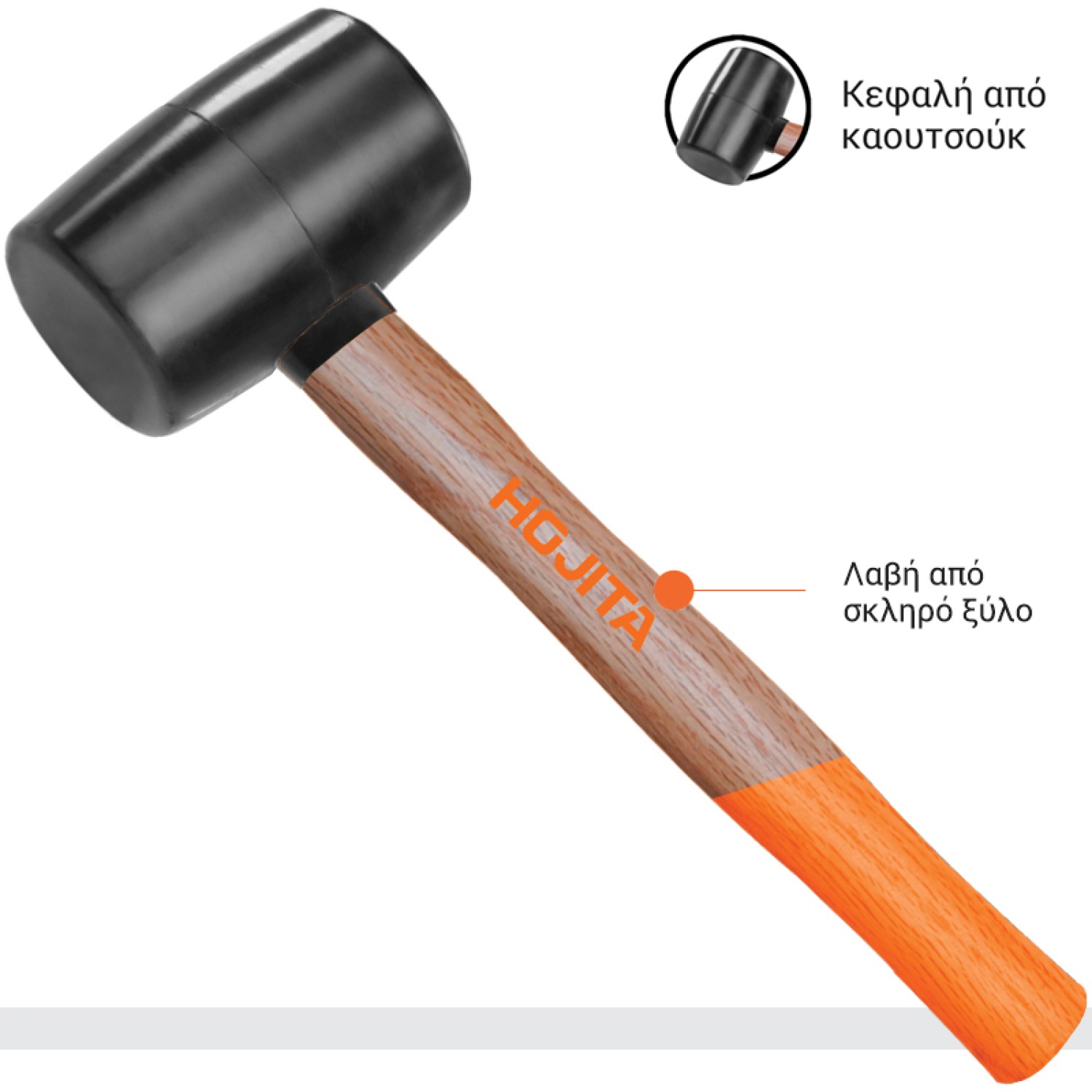 >Κεφαλή από καουτσούκ >Λαβή από σκληρό ξύλο >Δεν αφήνει σημάδια >Βάρος:220gr