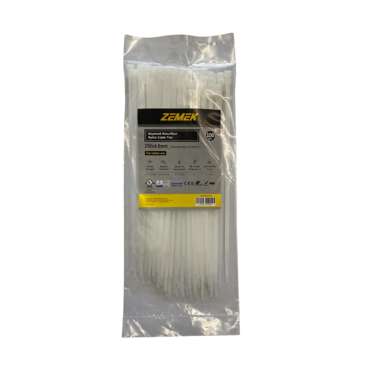 Zemek ZK-S-250-10-N Δεματικά Καλωδίων 4.8x250mm Λευκά 100ΤΜΧ