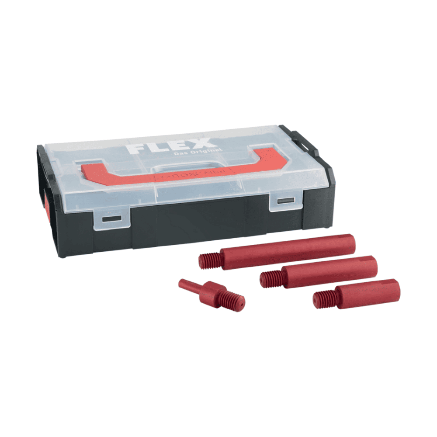 Το σετ περιλαμβάνει τρεις επιμηκύνσεις M14 από ανωδιωμένο αλουμίνιο 50mm, 80mm, 120mm, αλλά και έναν προσαρμογέα M14 για επαναφορτιζόμενο κατσαβίδι σε πρακτική βαλίτσα Mini L-BOXX®. Η βαλίτσα διαθέτει θέση και για τον φακό SF150P (δεν περιλαμβάνεται)