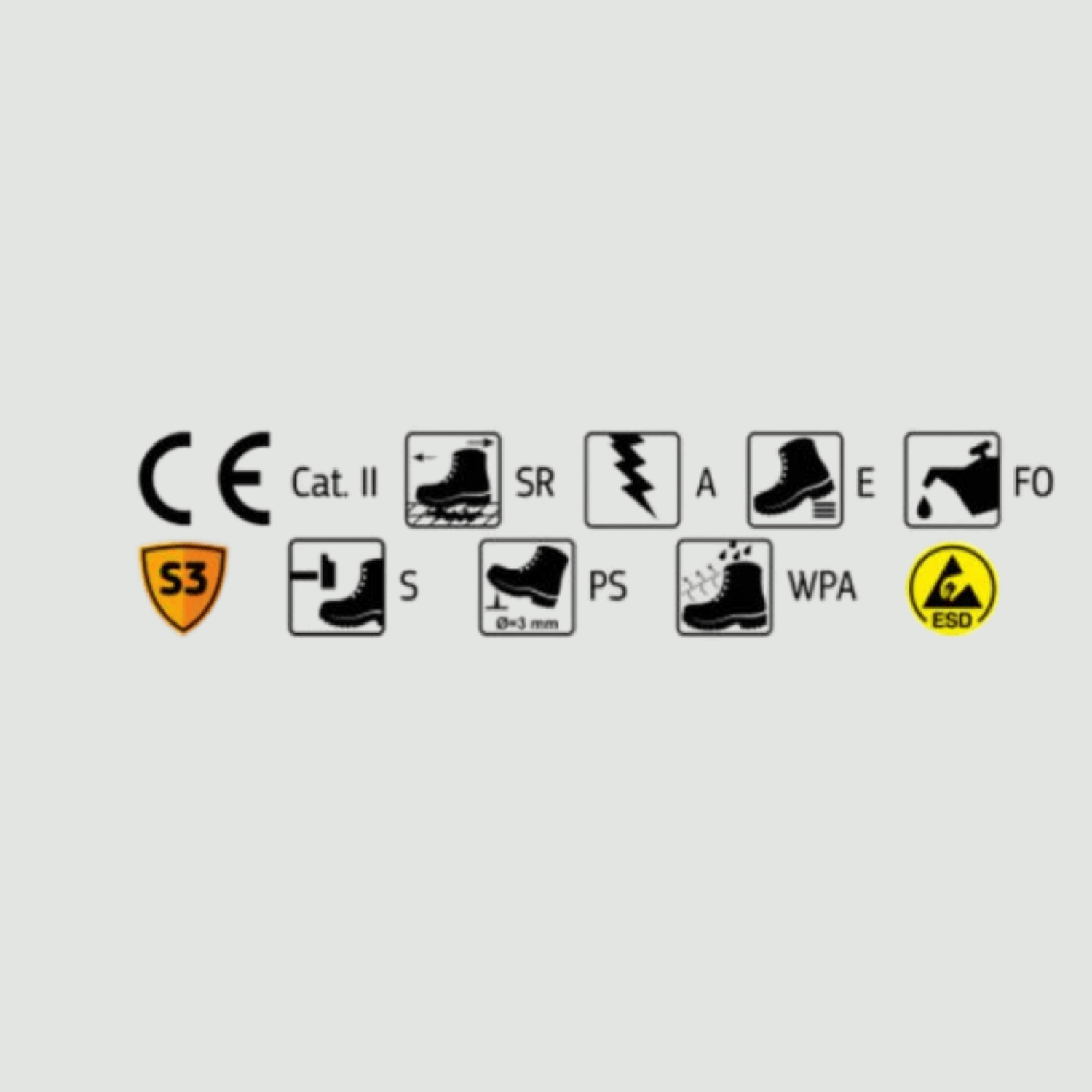Σόλα: Αντιολισθητική (SR), αντιστατική, διπλής πυκνότητας PU, ανθεκτική σε λάδια και προϊόντα πετρελαίου (FO).