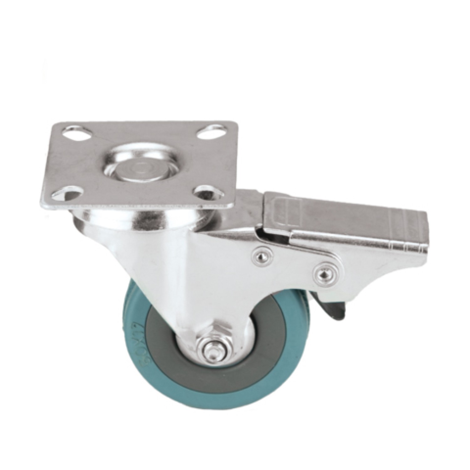 ΡΟΔΑ ΒΙΟΜΗΧΑΝΙΚΗ ΒΑΡΕΩΣ ΤΥΠΟΥ, NYLON ΜΠΛΕ, ΜΕ ΦΡΕΝΟ, Φ100mm, FF GROUP (40907)