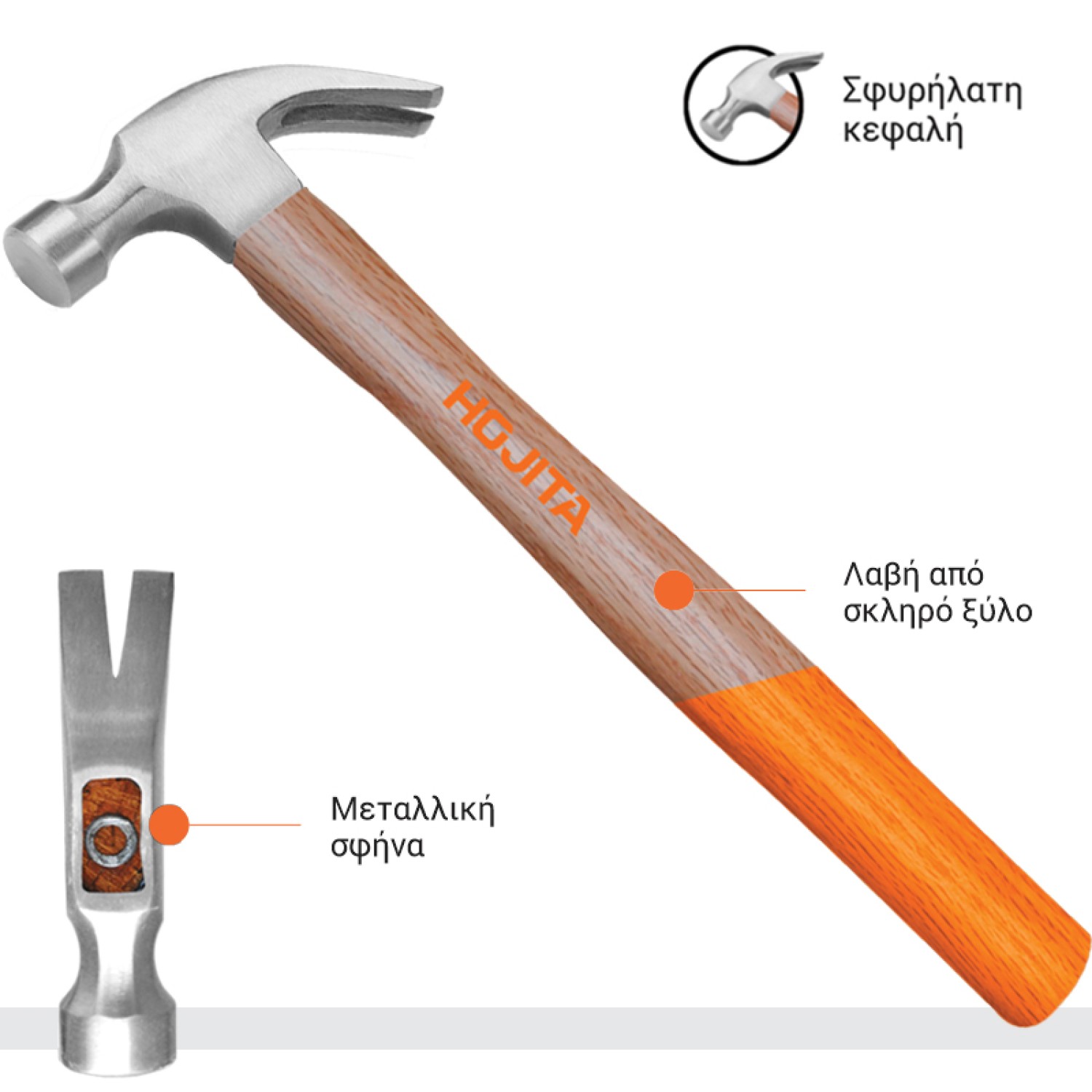 >Σφυρήλατη κεφαλή >Μεταλλική σφήνα >Θερμική επεξεργασία, ανθρακούχος χάλυβας 45 >Λαβή από σκληρό ξύλο >Για κάρφωμα & εξαγωγή καρφιών >Βάρος: 450gr